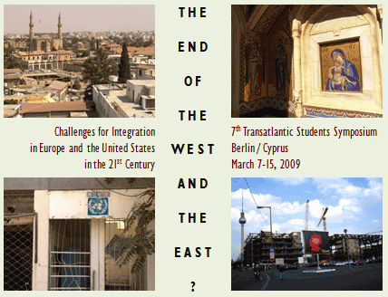 Graduate Seminar and 7th Transatlantic Students Symposium: "The End of the West and the East? Challenges for Integration in Europe and the US in the 21st Century". Humboldt-Universität zu Berlin, Winter 2008/09, in cooperation with Georgetown University and Nicosia University
